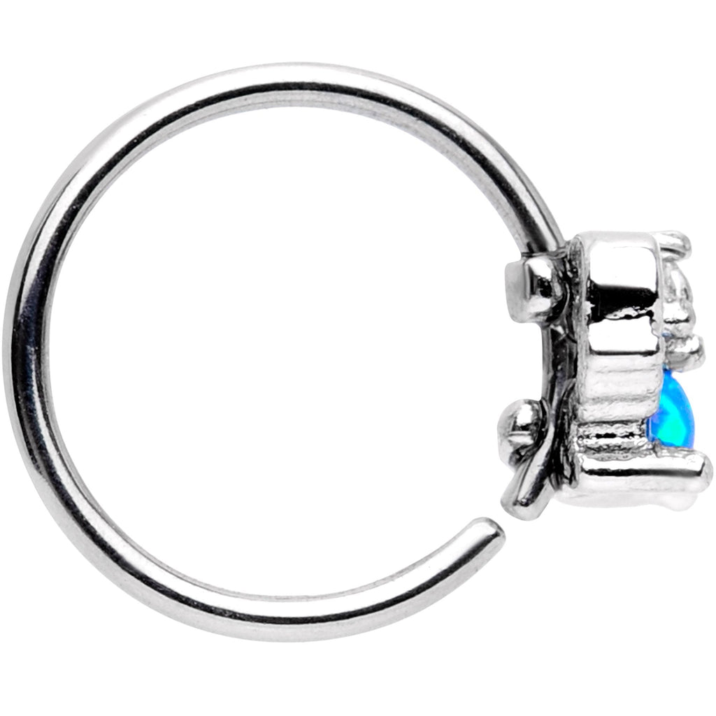 If you love wearing nose jewelry that adds a little touch of color to your favorite piercing then this pretty 20 gauge nose hoop is a perfect choice for you. Made with an 8mm durable 316L surgical grade stainless steel circular ring, this nose piercing features a fashionably detailed charm set with a blue synthetic opal that brings your look to the next level. To use this seamless body jewelry simply twist the ring open gently, insert into your piercing, and then twist shut again.Specifications