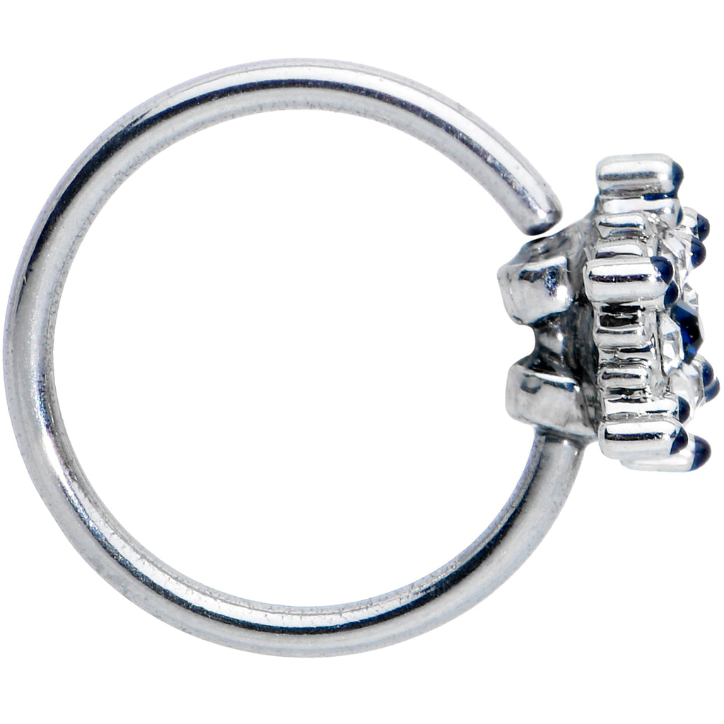 20 Gauge 5/16 Clear Blue Gem Festive Snowflake Nose Hoop