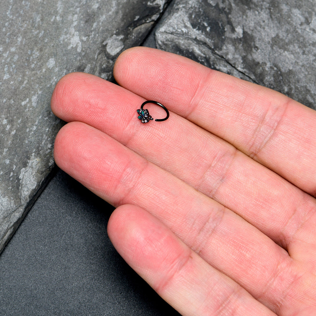 20 Gauge 5/16 Clear CZ Gem Black Lush Leaves Nose Hoop