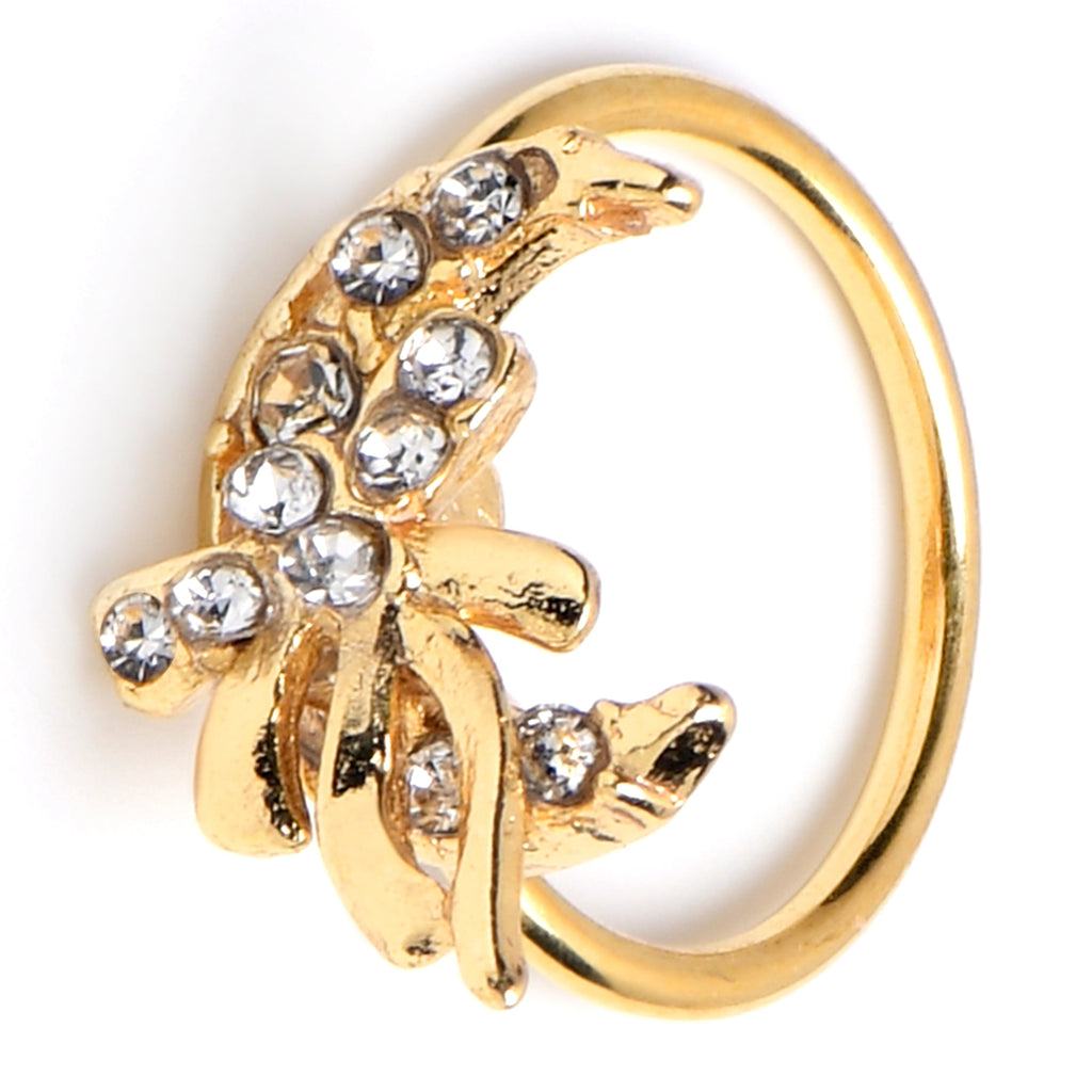 20 Gauge 5/16 Clear CZ Gem Gold Tone Bow Moon Nose Hoop