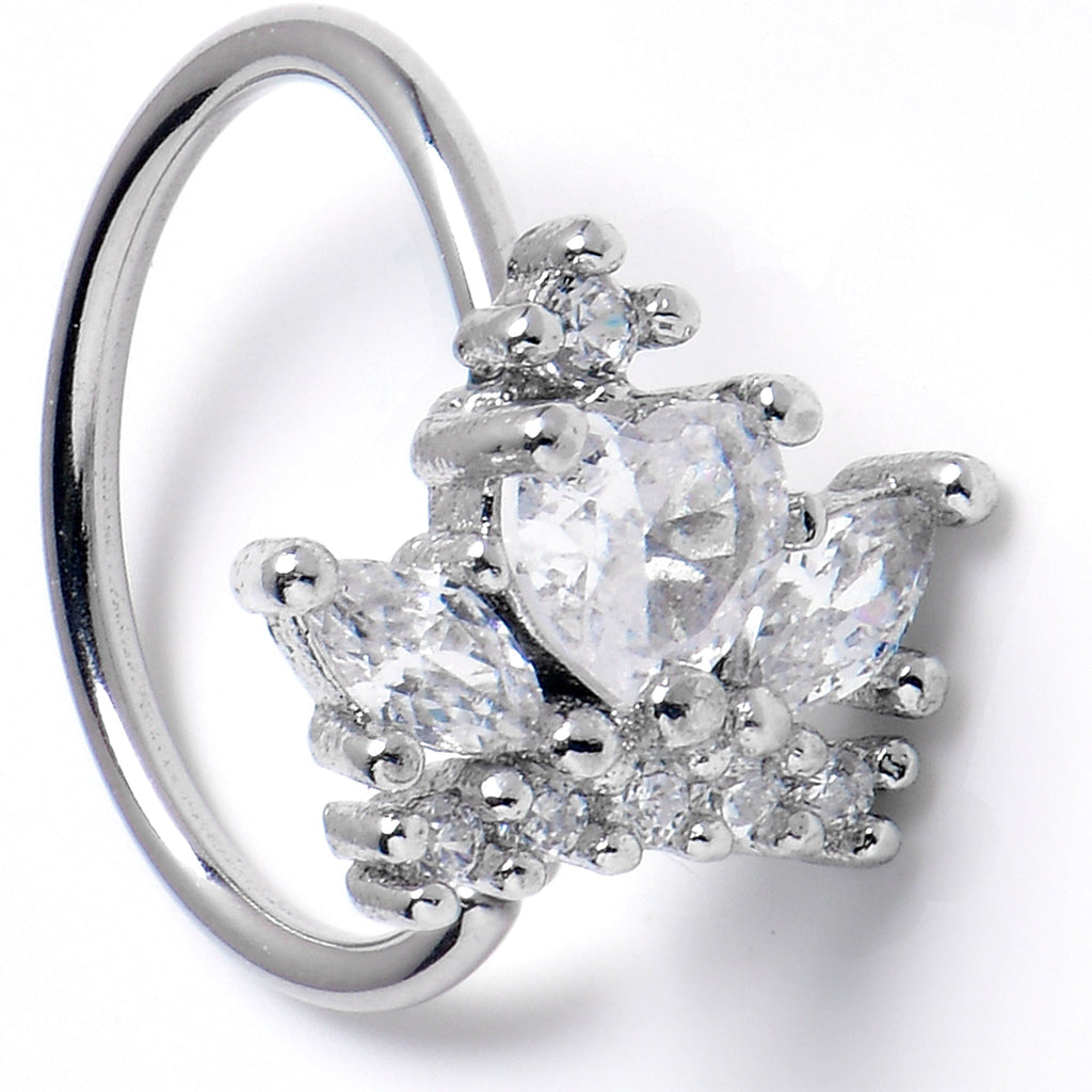 20G 5/16 Clear CZ Gem Heart Crown Nose Hoop