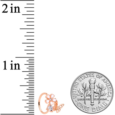 20 Gauge 5/16 Clear CZ Gem Rose Gold Tone Butterfly Flower Nose Hoop