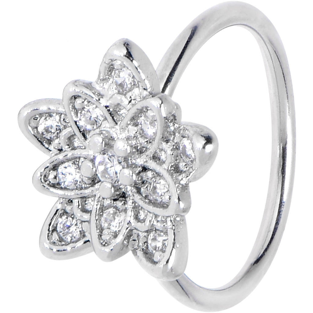20G 5/16 Clear CZ Gem Snowflake Flower Nose Hoop