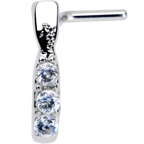 20 Gauge 5/16 Clear CZ Gem Trio Graceful Faux Hoop L Shaped Nose Ring