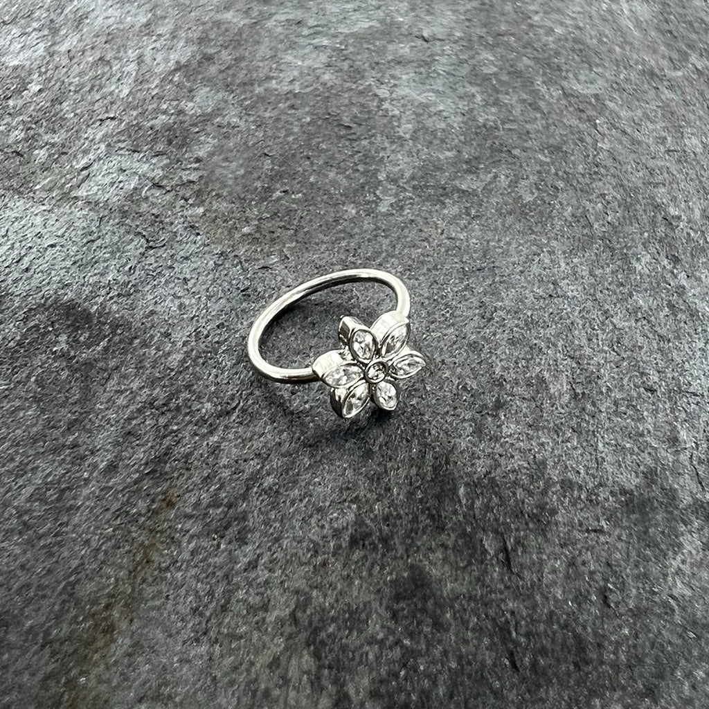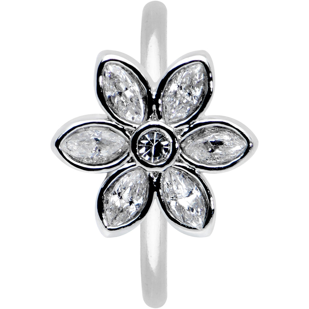 20 Gauge 5/16 Clear Gem Fancy Flower Seamless Nose Hoop