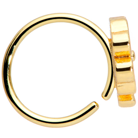 You'll be good looking with good luck when you're wearing this 20 gauge nose ring! It's made with an 8mm gold tone PVD over 316L surgical grade stainless steel circular ring and features a shamrock charm paved with clear gems, giving it a look that's luxe as well as lucky! To insert, just give it a light twist, insert it into your nostril piercing and gently bend it closed. Whether you're celebrating Saint Patrick's Day, showing off your Irish heritage, or just need a bit of extra luck, you'll feel fortunate to have found this striking shamrock nose piercing jewelry!Specifications