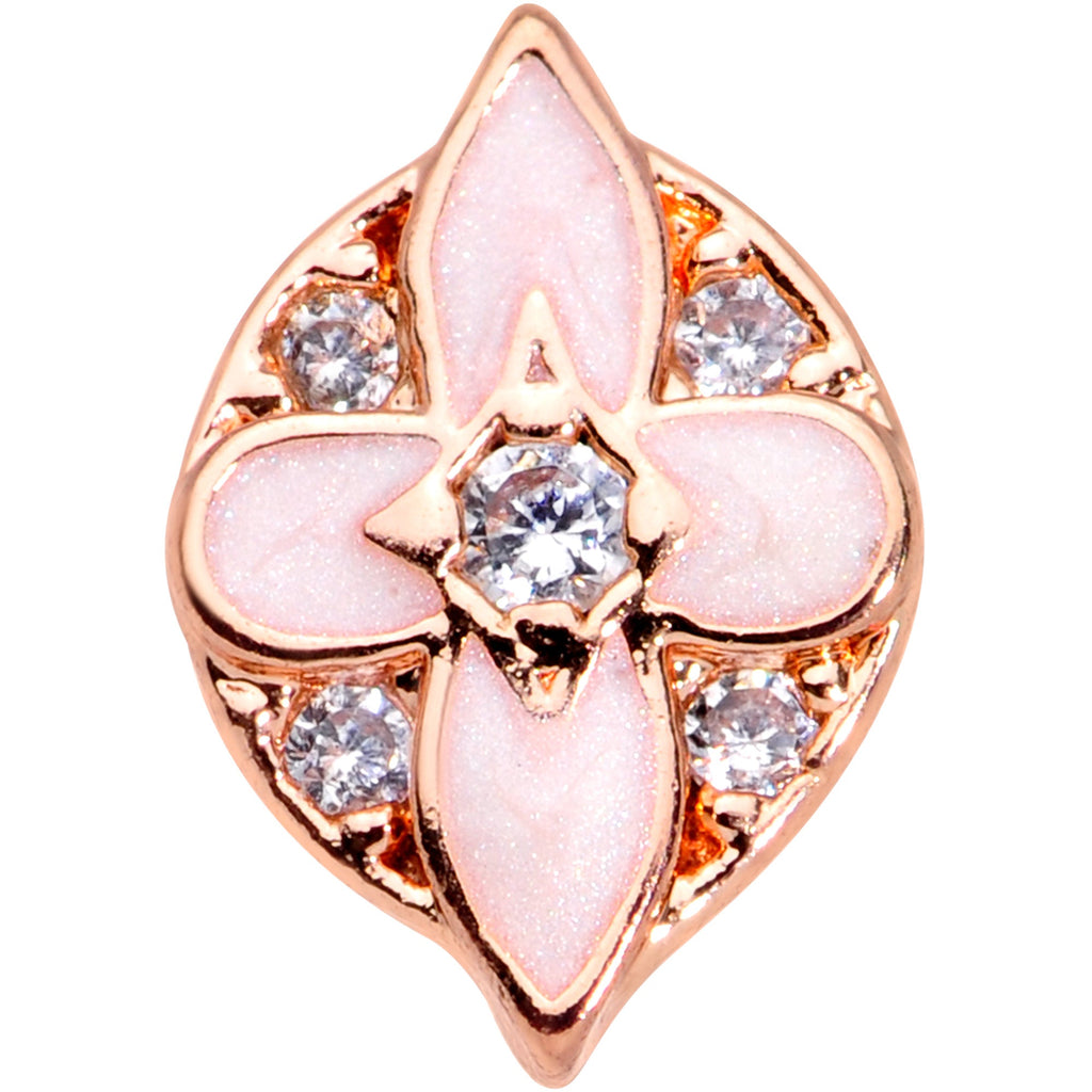20 Gauge 5/16 Clear Gem Rose Gold Tone Pink Cross Nose Hoop