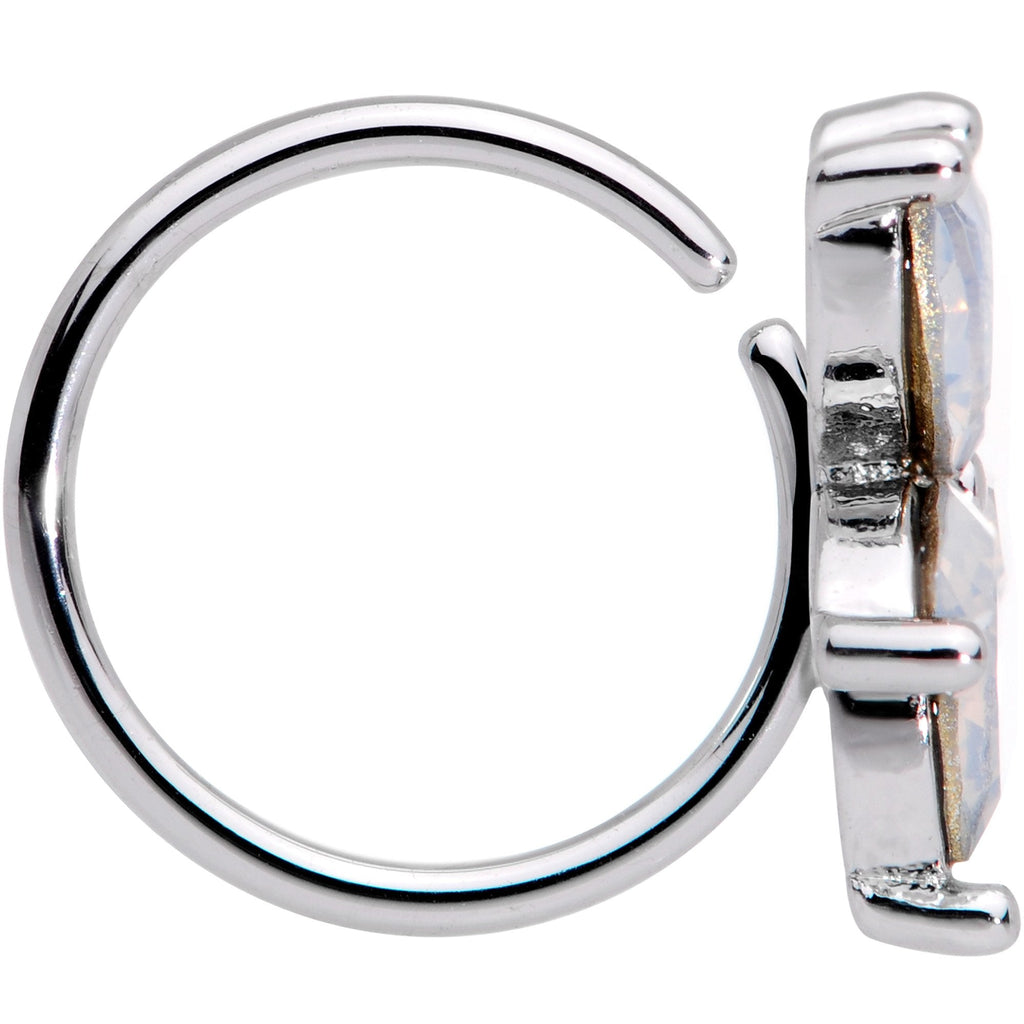 This five-petal flower seems to almost be turning into a star...or turning YOU into a star! The 20 gauge nose hoop is made with an 8mm durable 316L surgical grade stainless steel circular ring. It features a flower with five petals, each set with a clear faux opal for an alluring, sophisticated look that is still subtle enough not to overwhelm your look. Whether you're a beautiful flower or the brightest star in the room, this nose ring has you covered!