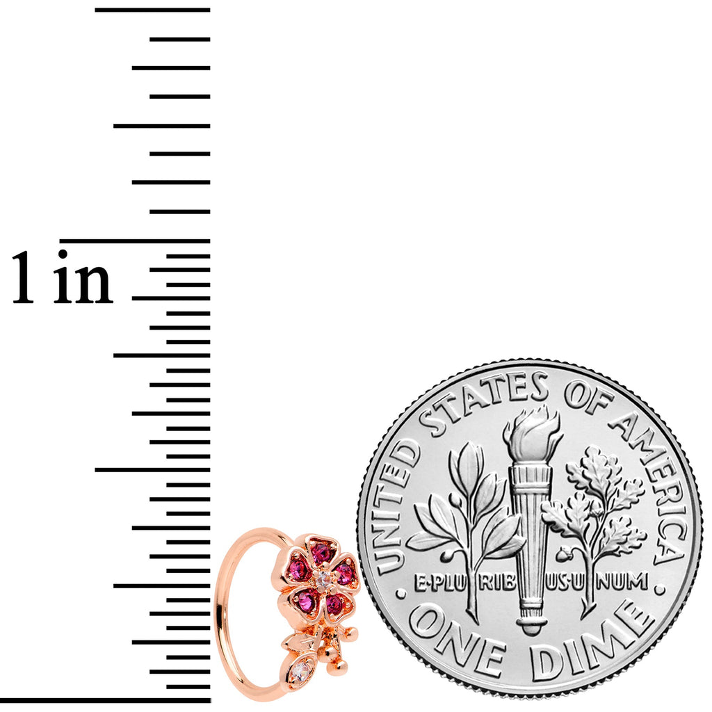 20 Gauge 5/16 Clear Pink Gem Rose Gold Tone Heart Flower Nose Hoop