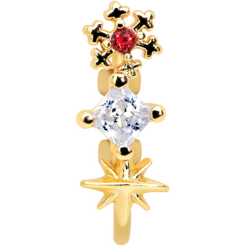 20 Gauge 5/16 Clear Red Gem Gold Tone Star Snowflake Nose Hoop