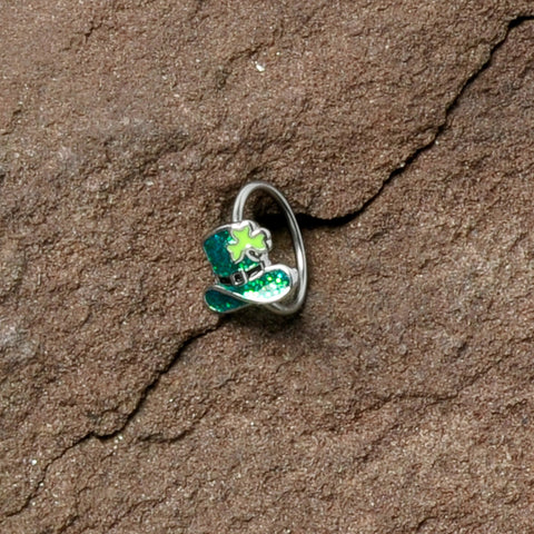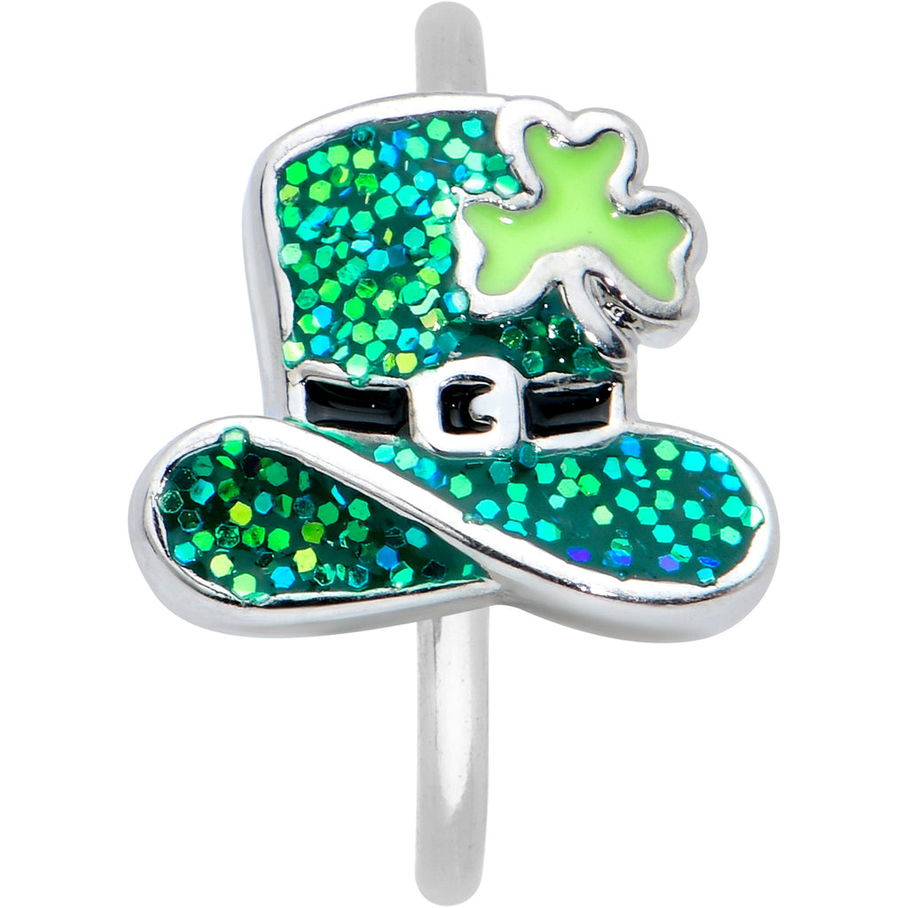 20 Gauge 5/16 Glitter Top Hat Shamrock St Patricks Nose Hoop