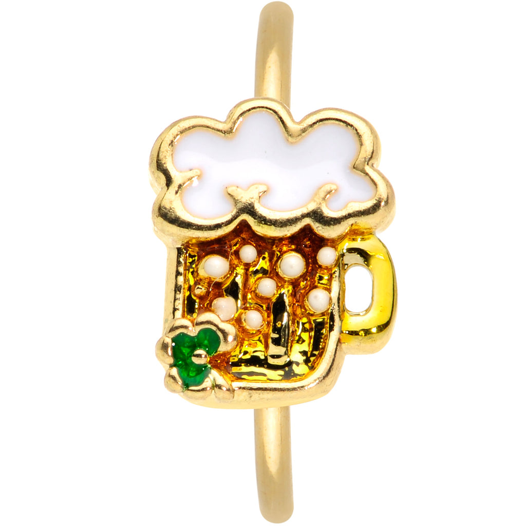 20 Gauge 5/16 Gold Tone Beer Mug St Patricks Day Nose Hoop