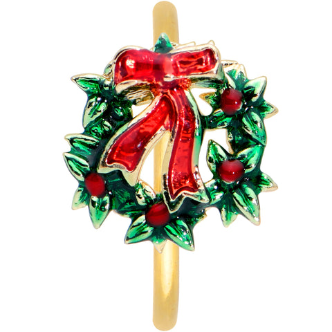 20 Gauge 5/16 Gold Tone Festive Bow Wreath Christmas Nose Hoop