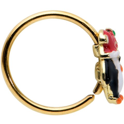 20 Gauge 5/16 Gold Tone Holly Hat Penguin Holiday Nose Hoop