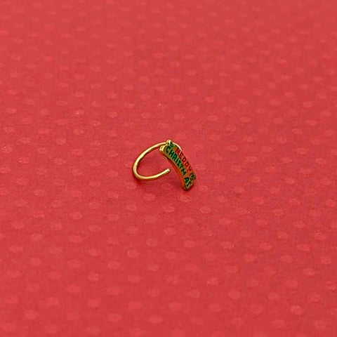 Keep the message simple with this 20 gauge nostril ring! It's made with an 8mm gold tone PVD over 316L surgical grade stainless steel circular ring. It features a Merry Christmas charm, with the words inlaid in festive red and green. Get your message across with this word-perfect holiday nose piercing ring!