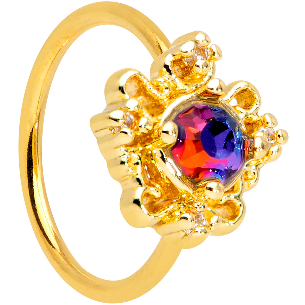 20 Gauge 5/16 Gold Tone Purple Tourmaline Filigree Nose Hoop
