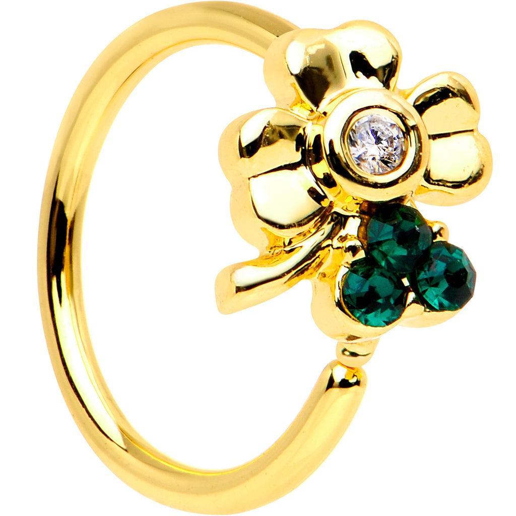 20 Gauge 5/16" Green Gem Gold PVD Clover Bow Seamless Circular Ring