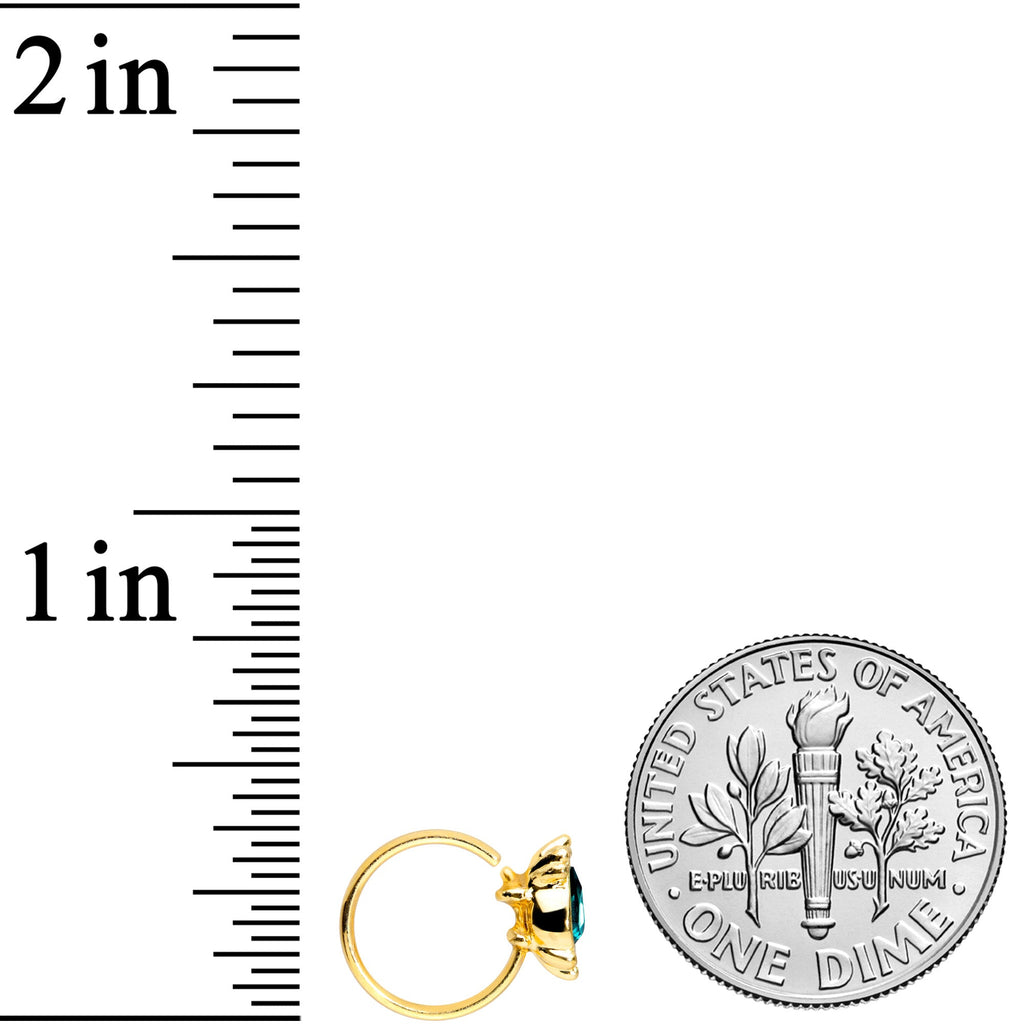 This 20 gauge nostril ring combines colors and simple shapes for a feel that's luxurious. It's made with an 8mm gold tone PVD over 316L surgical grade stainless steel circular ring and features a drop-shaped gem charm in a rich deep green. Whether you're headed for a sumptuous soiree or simply want a look of simple elegance, you'll get both with this stunning nose ring!Specifications