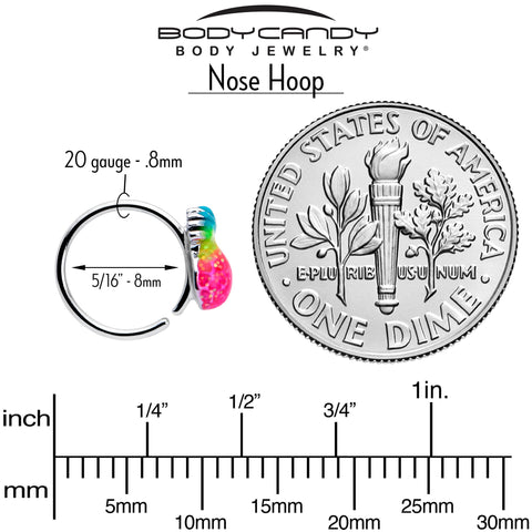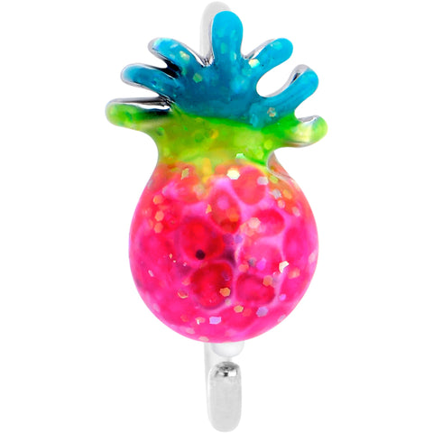 What could be sweeter than the ripe, juicy pineapple on this 20 gauge nostril ring? It's made with an 8mm durable 316L surgical grade stainless steel circular ring. It features a hot, hot pink fruit, with textured detailing. The pineapple is embellished with a yellow top and blue leaves for a trippy and tasty look. Get hot and juicy and totally sweet with this delicious looking nose piercing jewelry.Specifications