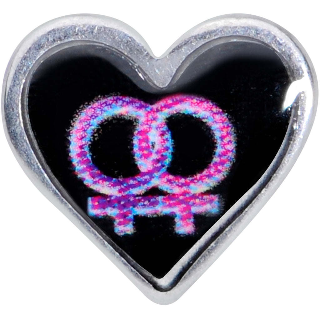 Show off your pride without saying a word when you wear this 20 gauge nostril jewelry that supports rights for everyone! It's made with an 8mm durable 316L surgical grade stainless steel straight post. The top is a black heart-shaped charm with entwined female signs in pink and purple that speak volumes. With this in your nostril piercing, you can support love and pride however you see fit and look super stylish while doing it!