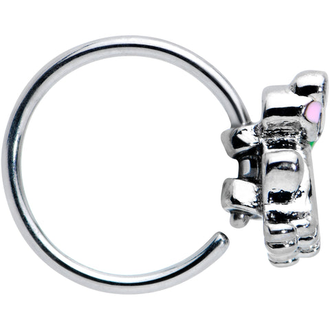 You'll be feeling groovy when you're rocking this 20 gauge nostril ring! It's made with an 8mm durable 316L surgical grade stainless steel circular ring. It features a frog charm, with the body embellished in light green and black embellishments for eyes. This frog even has a charming smile and a bashful blush! Get groovy in light green with this awesome amphibian nose piercing jewelry!