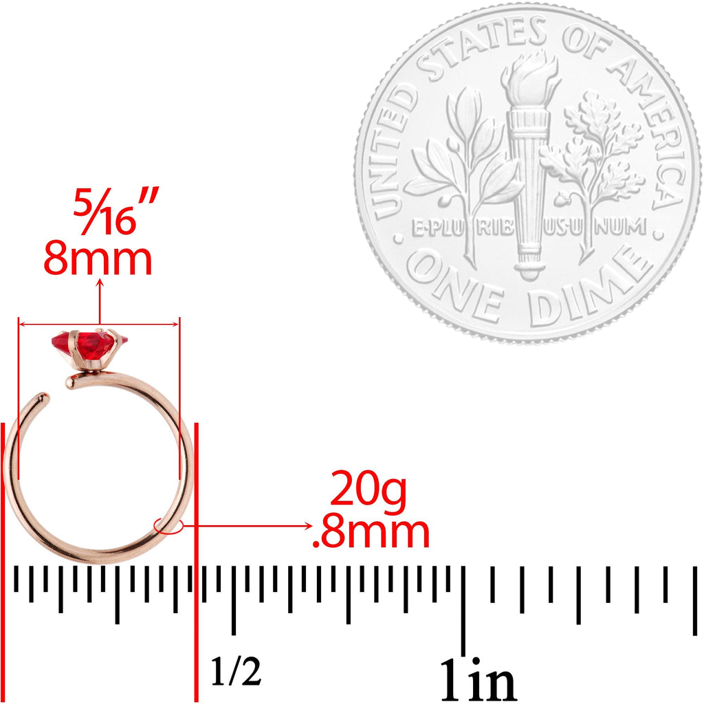 20G 5/16 Multicolor Single Gem Rose Gold Tone Nose Hoop Set of 6