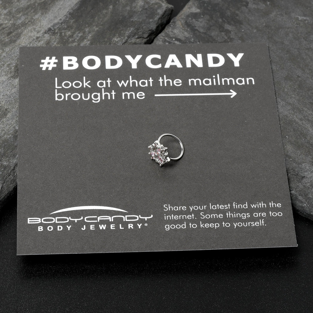 20 Gauge 5/16 Pink Clear CZ Gem Snowflake Nose Hoop