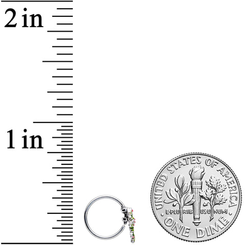 20G 5/16 Pink CZ Gem Candy Cane Holly Christmas Nose Hoop