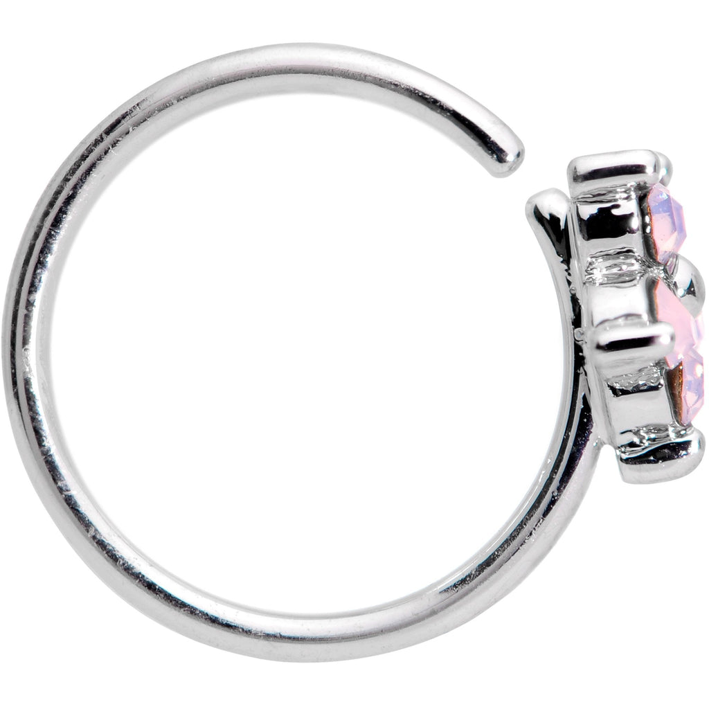 If you lovely flowers and warm spring days then this 20 gauge nose jewelry with a flower twist you make you feel seasonably cheerful all year round. Made with an 8mm durable 316L surgical grade stainless steel circular ring, this nostril ring features a flower charm formed with pink faux opals for a fun fashion twist!Specifications