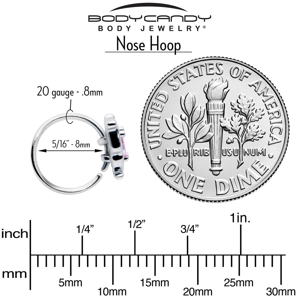 20 Gauge 5/16 Pink Gem Fancy Fab Butterfly Nose Hoop