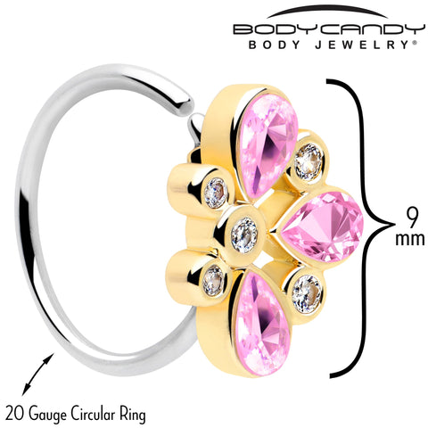 20 Gauge 5/16 Pink Gem Golden Crown Deluxe Nose Hoop