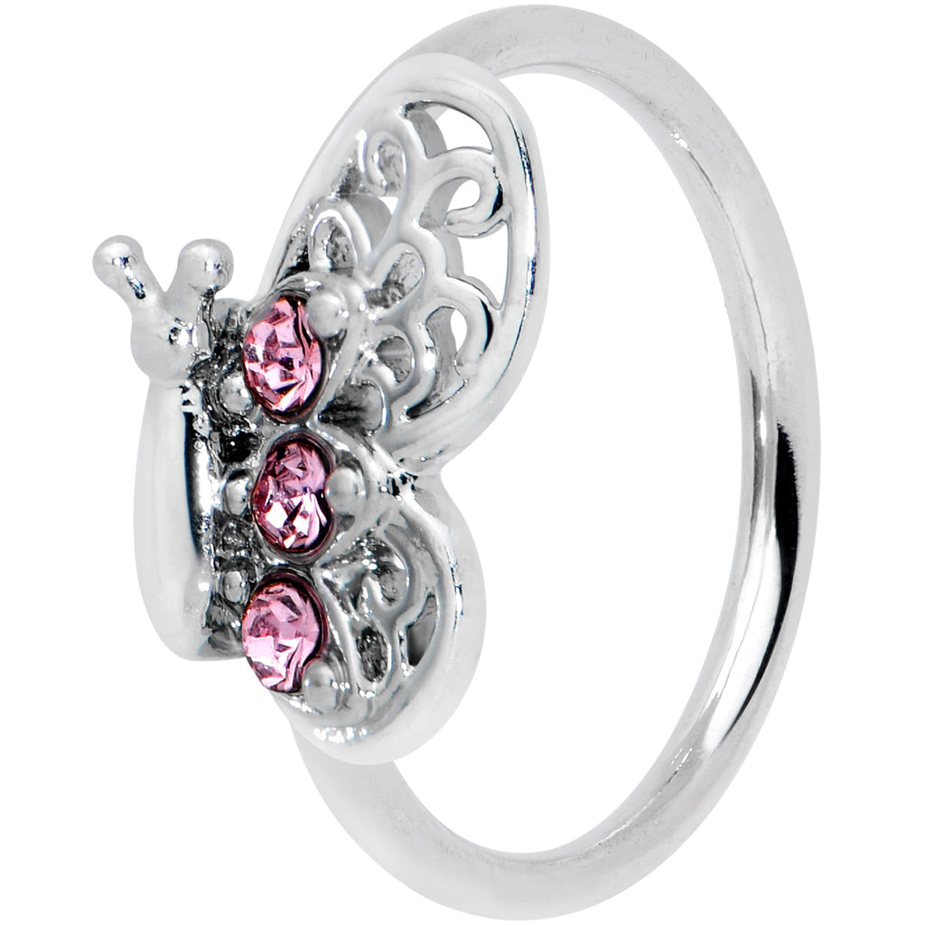 20 Gauge 5/16 Pink Gem Lacy Butterfly Nose Hoop