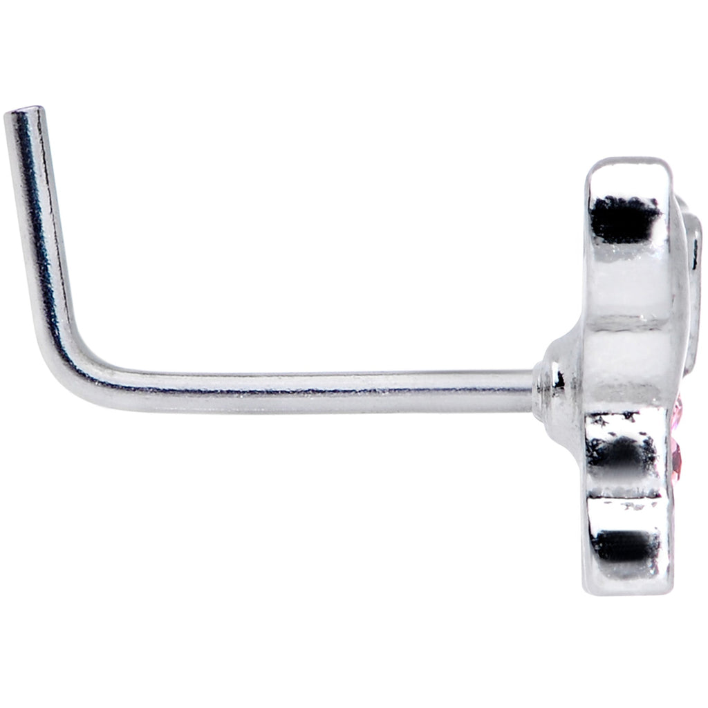 20 Gauge 5/16 Pink Gem Lucky Elephant L Shaped Nose Ring