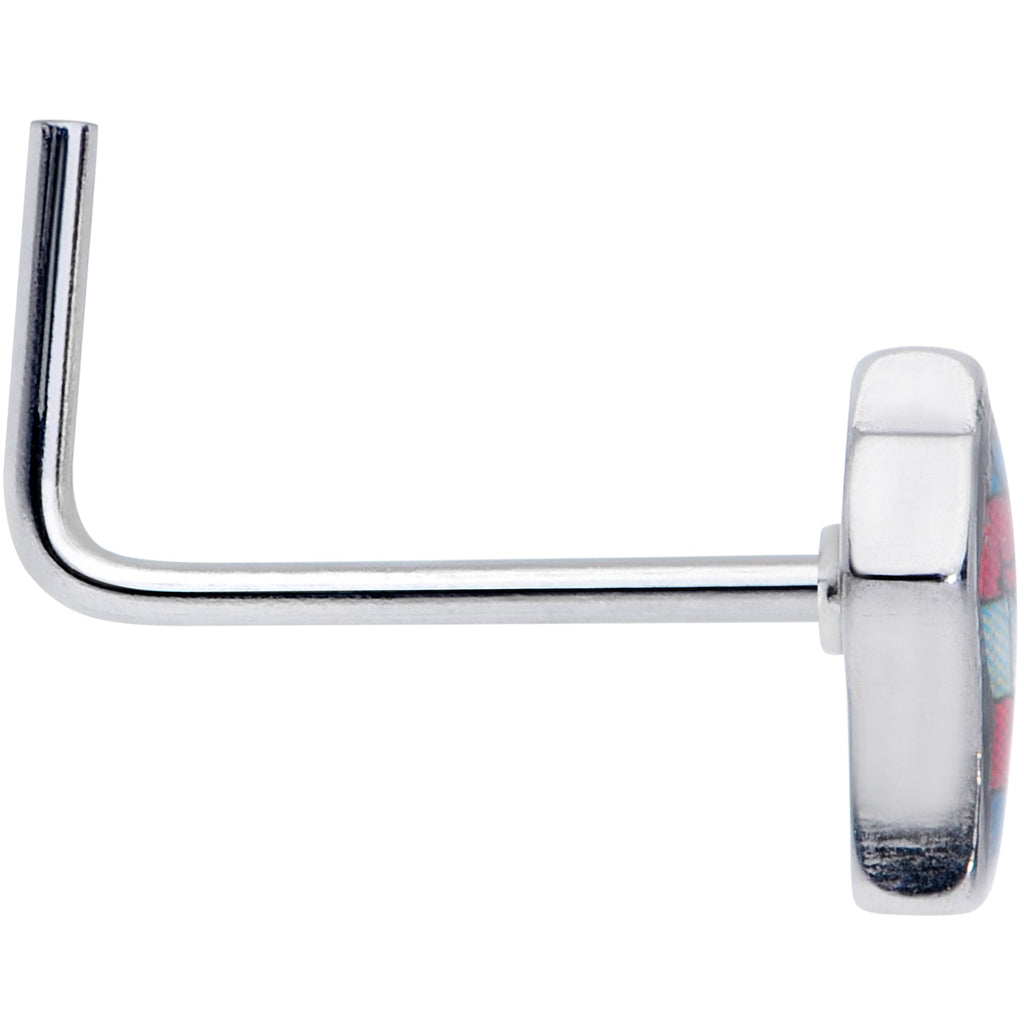 Show off your belief in transgender rights when you wear this 20 gauge nostril jewelry. It's 8mm length at the bend and made with a durable 316L surgical grade stainless steel L-shaped post. The end features a transgender pride fist bottom charm in pink, white, and blue so you can show your support for all. Let your jewelry speak for you with this transgender pride nose ring!Specifications