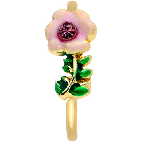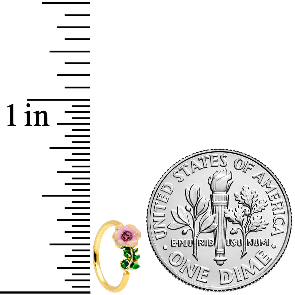 20 Gauge 5/16 Purple CZ Gem Gold Tone Pink Flower Nose Hoop
