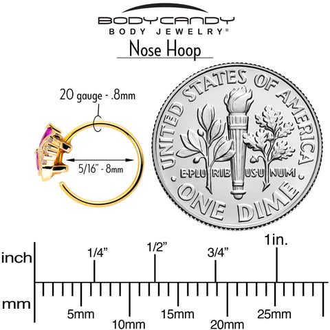 20 Gauge 5/16 Red CZ Gem Gold Tone Swirl Fan Nose Hoop