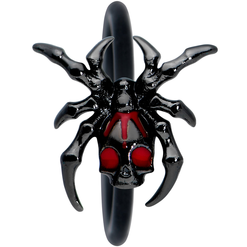 20 Gauge 5/16 Red Gem Black Spider Skull Halloween Nose Hoop