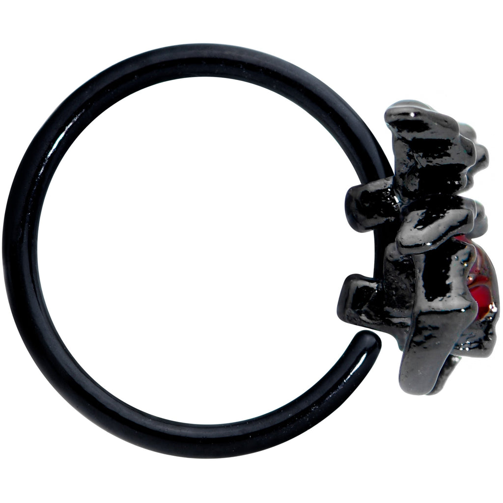 20G 5/16 Red Gem Black Spider Skull Halloween Nose Hoop