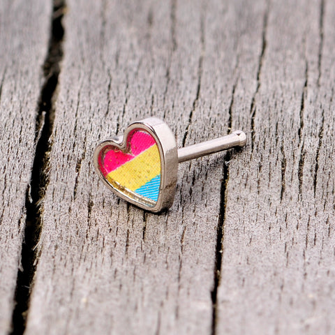 20G 5/16 Red Yellow Blue Pansexual Pride Heart Nose Bone