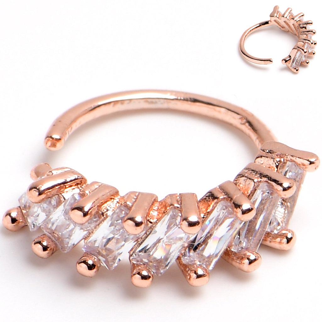 20 Gauge 5/16 Rose Gold Toned Princess Cubic Zirconia Bendable Hoop