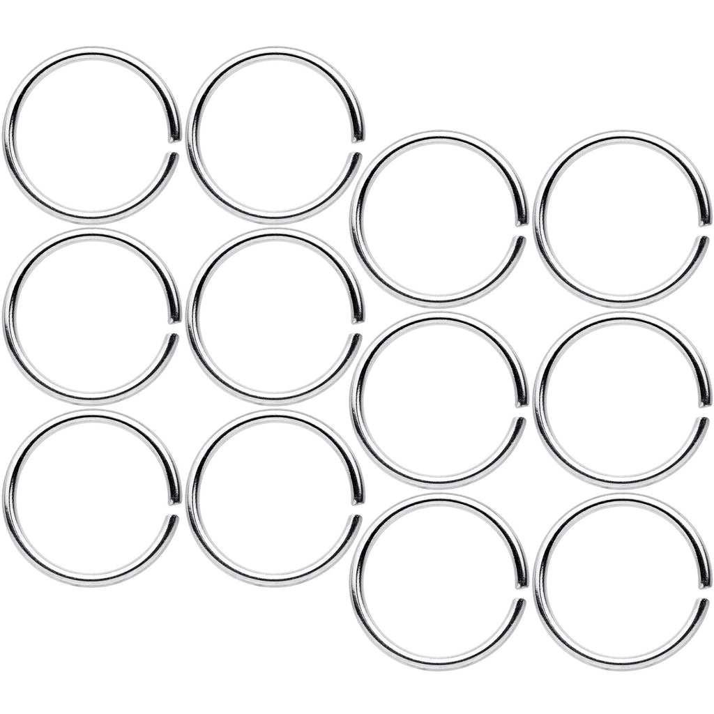 Whether you have multiple nostril piercings and prefer a matching look or are simply prone to losing things, this set of 20 gauge nose rings has you covered. They're made with 8mm durable 316L surgical grade stainless steel circular rings for a colorful and comfortable feel. This nostril jewelry is super easy to insert and remove - simply twist the ring open, insert, and then twist gently shut again. And with so many in the set, you can be sure of always having a beautiful nose ring to wear! Sold as a set of twelve. These are universal seamless rings for multiple body piercings including ear, lip and septum or nose.Specifications