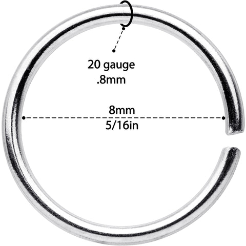 20 Gauge (.8mm), 5/16" (8mm), 316L Surgical Grade Stainless Steel Seamless Circular Rings, Sold as a Set of 12