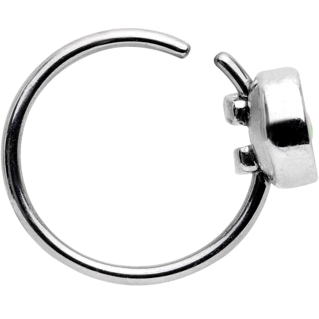 If you love wearing nose jewelry that adds a little touch of color to your favorite piercing then this pretty 20 gauge nose hoop is a perfect choice for you. Made with an 8mm durable 316L surgical grade stainless steel circular ring, this nose piercing features a white synthetic opal inlay that brings your look to the next level. To use this seamless body jewelry simply twist the ring open gently, insert into your piercing, and then twist shut again.