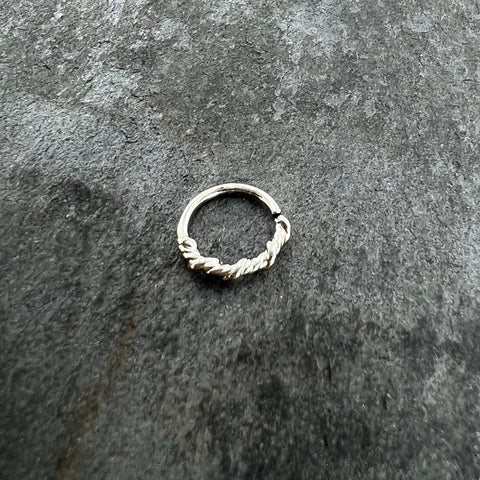 Get wired for style with this 20 gauge nostril ring! It's made with an 8mm durable 316L surgical grade stainless steel circular ring. It features a wire-inspired style that looks twisted, for a look that's totally wild. It's easy to insert and remove - Just give it a light twist, insert it into your piercing and gently bend it closed. This wire-styled nose piercing ring is one you'll never want to cut from your jewelry wardrobe!