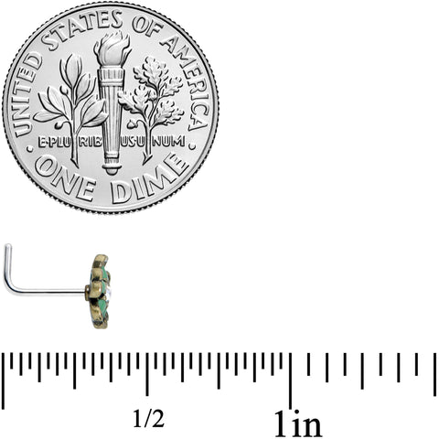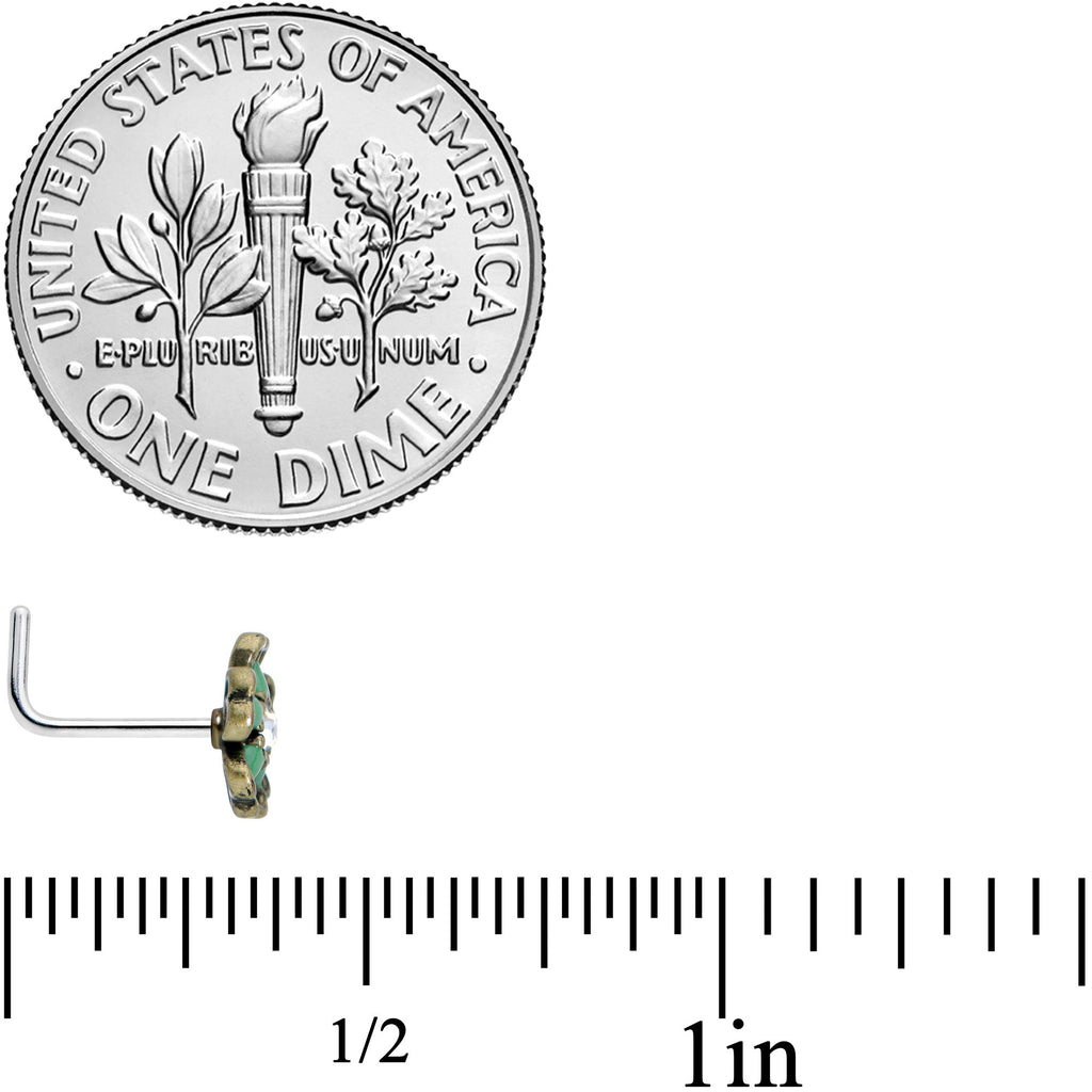 20 Gauge 7.5mm Gold Tone Green Flower St Patrick Day L Shape Nose Ring