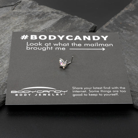 20 Gauge 7mm Aurora CZ Gem Fleur de Lis Butterfly L Shape Nose Ring