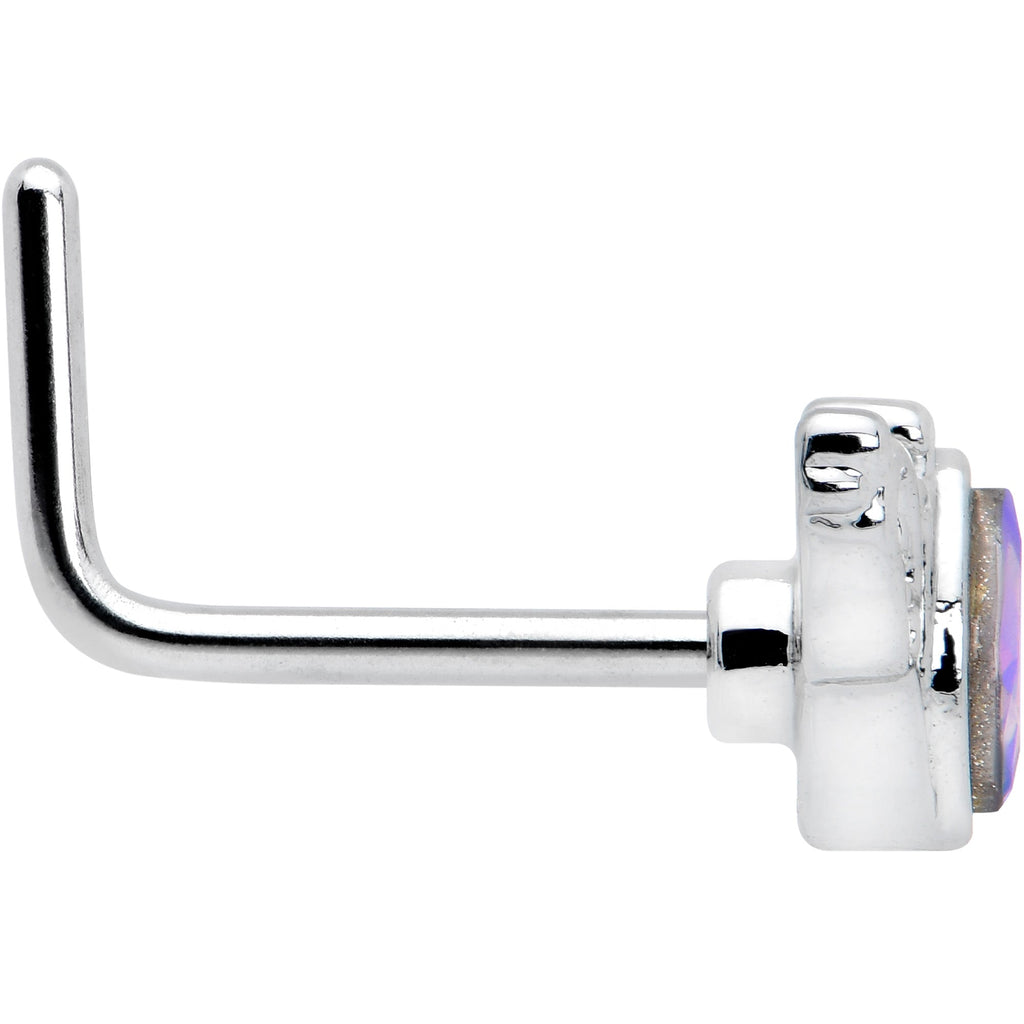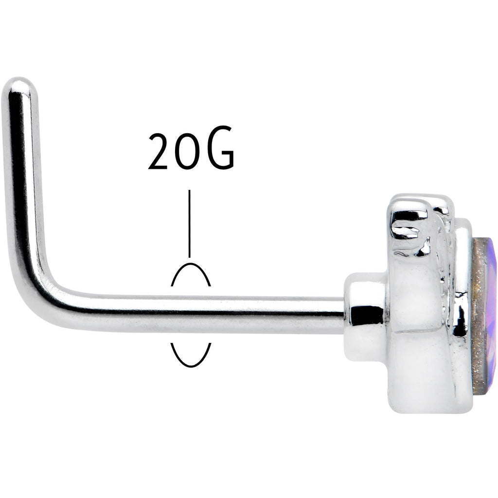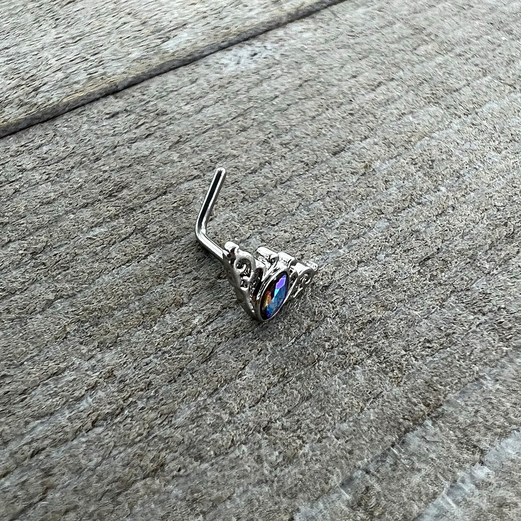 20 Gauge 7mm Aurora Gem Deco Waves L Shape Nose Ring
