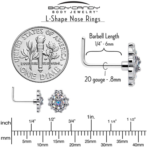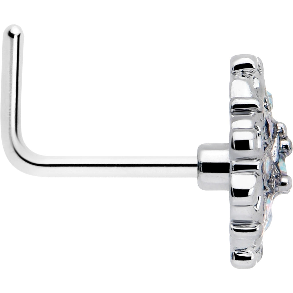 20 Gauge 7mm Aurora Gem Retro Sunburst L Shape Nose Ring