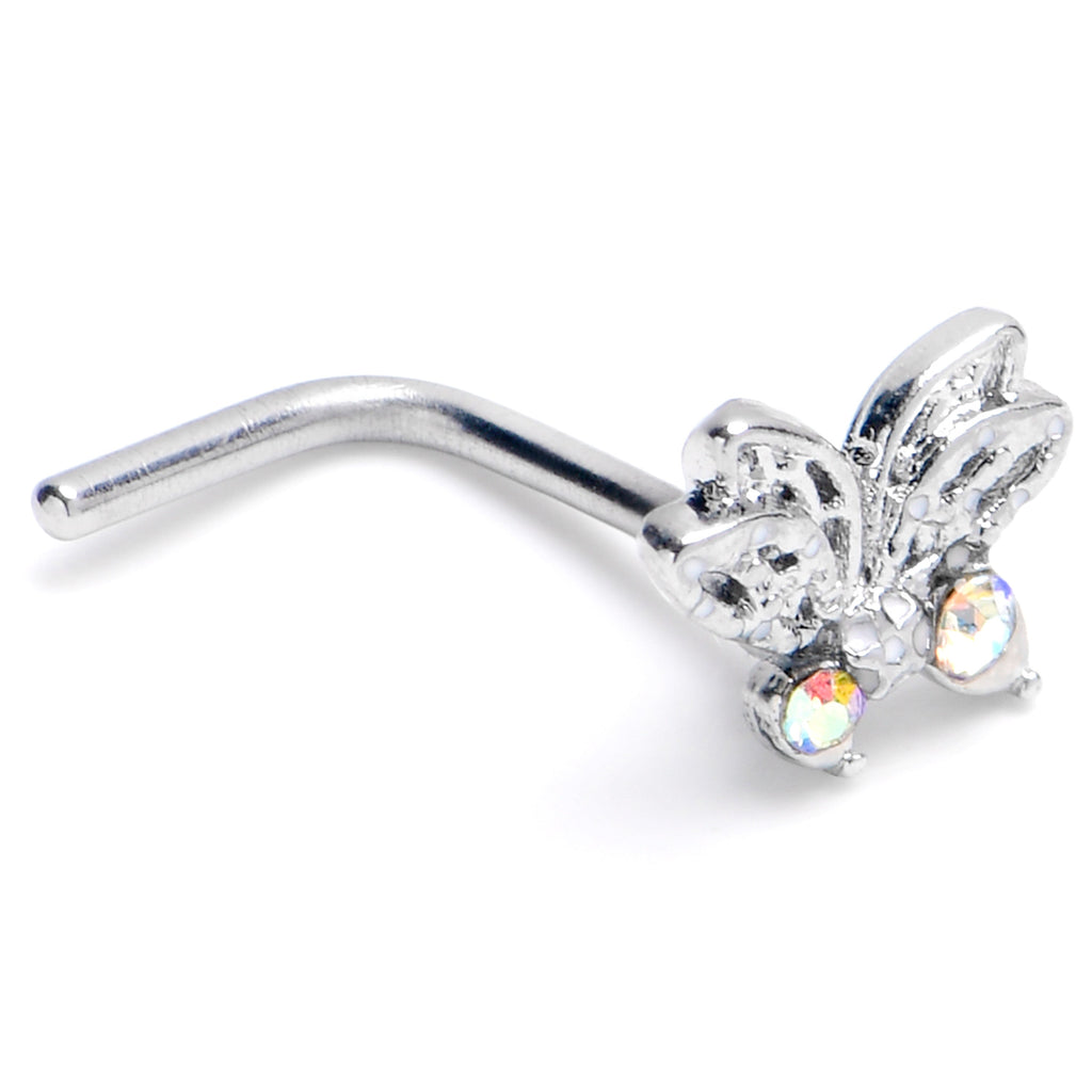 20 Gauge 7mm Aurora Gem Ultra Drama Butterfly L Shape Nose Ring
