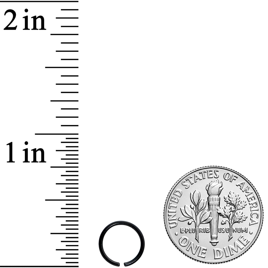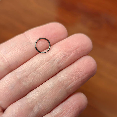 Sometimes we all need closure....sometimes we just need some awesome jewelry like this 20 gauge nostril ring! It's made with a .27" black PVD over solid grade 23 implant grade titanium circular ring. It features durable materials as well as simple style that never goes out of fashion. It also features rounded ends to make insertion and removal super comfortable. This hoop ring is super easy to insert and remove - simply twist the ring open, insert, and then twist gently shut again. Put some quality elegance in your nose piercing with this understated nostril piercing ring! This bendable titanium hoop can be used for multiple piercings including lip ring, ear piericngs and nose hoop.Specifications